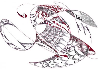 About the artwork Name of painting Pose part of Enchanted NatureSize 77.0 x 55.5 cmPaperEast Indian Ink + Japanese WatercolorEmbroidery / Cotton Yarn